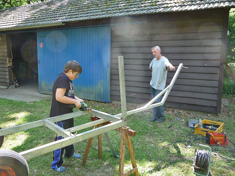Die ehemalige Forstscheune ist unser Geräteschuppen. Transportwagen stehen zur Verfügung.